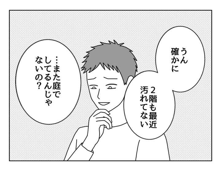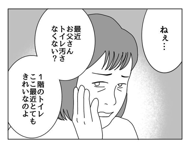 お義母さんはお義父さんがここ最近、トイレを汚さないと言います。マモルさんは「また庭でしている」と疑っているようですが、今さっきお義父さんは2階のトイレに入っていきました。いったいどういうことなのでしょうか。