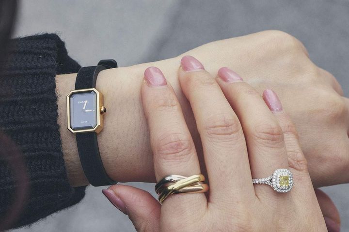 シャネルのプルミエールは仕事でもプライベートでも馴染んでくれるウォッチが欲しくて選んだ一本。プルミエール リボンのベルトは表がベルベット、裏はラバー素材になっていてシーズン問わずつけやすく、つい手にとってしまいます。ティファニーのイエローダイヤモンドは仕事で転換期があり、気合い入れようと思って買いました。憧れでしたし、太陽を身につけているみたいなパワーを感じるエンパワーメントリングです!
