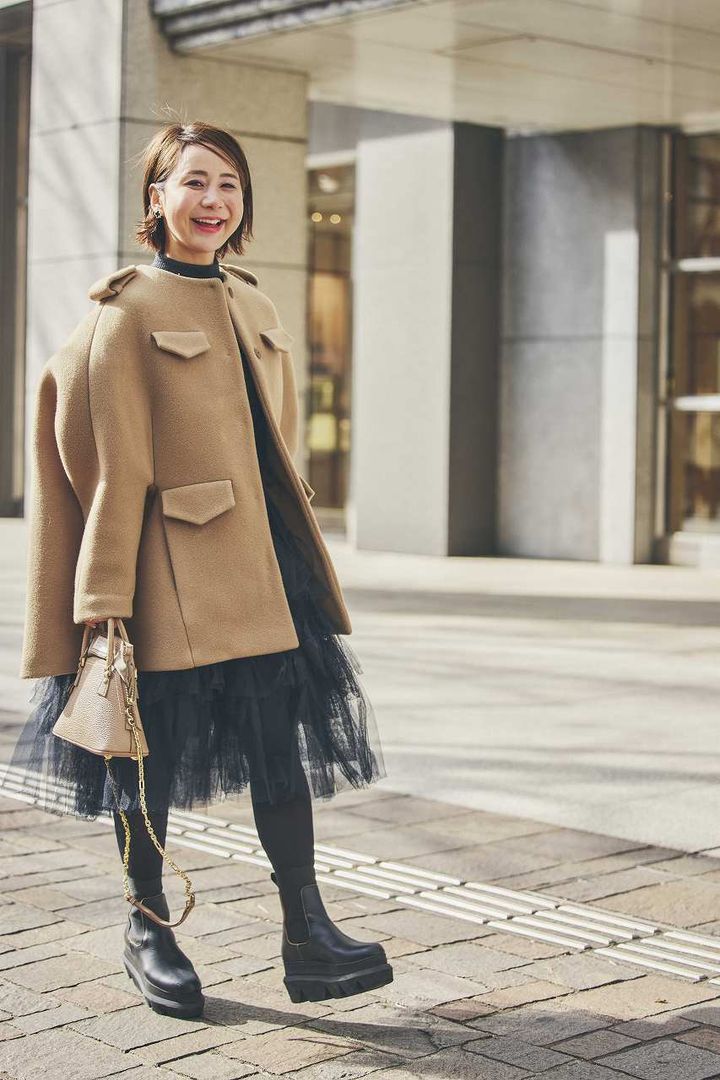 WATCH/CHANEL EARRING/Van Cleef & Arpels RING/timeless bijou, TASAKI BRACELET/ALIIITA NECKLACE/Cartier OUTER/PRADA KNIT/ENFOLD SKIRT/Simone Rocha SHOES/sacai BAG/Maison Margiela