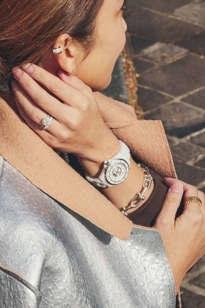 4年前に購入したのはずっと欲しいと思っていたシャネルのJ12!サイズ、フェイスの種類もたくさんあって、なかなか決めきれなかったのですが、店舗で見せてもらった時にフェイスの色味とダイヤのバランスが素敵で即決しました。シャネルのリングとウォッチの組み合わせは何度見てもトキメキます。