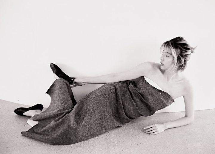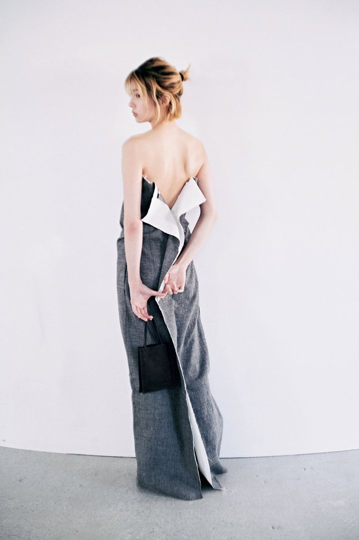「これはもう由衣さんの姿を見てもらえば言葉はいらないくらい。めっちゃ可愛いんです。こういうドレスがサラッと着られる女でいたい。それに着たいと思うときに探しても出会えない服だと思う。リネンのラフな質感、切りっぱなしの裾、仕立て途中のような背中のデザイン、中にはコルセットのようなビスチェが仕込んであってボディラインを綺麗に整えてくれる。大人のドレスアップは“THE”ってものを着るよりも、こういうのを選んだほうが絶対におしゃれ。誰かガーデンパーティとか呼んでくれないかな(笑)」