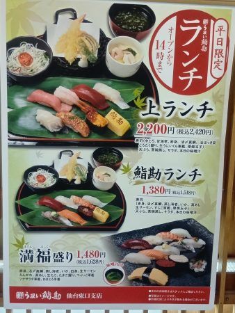仙台駅から徒歩1分! 豪華なお寿司セットがリーズナブルに楽しめるお店をご紹介。平日限定ランチはとってもお得で、これは見逃せないですよ!