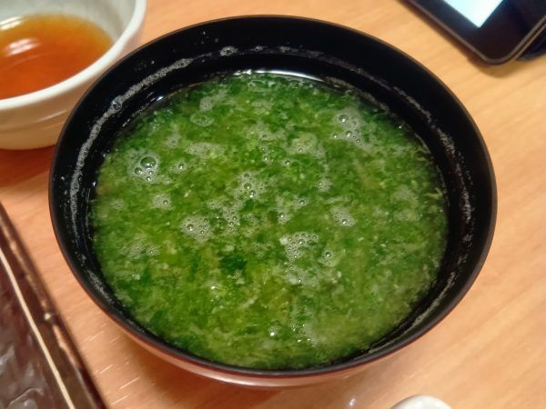 この日は、あおさの味噌汁。たっぷり入っていて、磯の香りが最高です。
