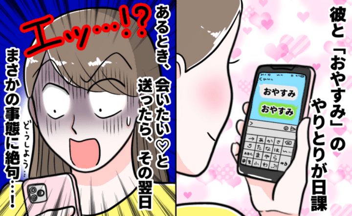 結婚した夫と付き合っていたとき。夫と私は遠距離恋愛をしていました。お互いの決め事として、「どんなに忙しくても寝る前に必ずおやすみとLINEすること」と決めていたのですが、このことがトンデモない事態に発展して……。