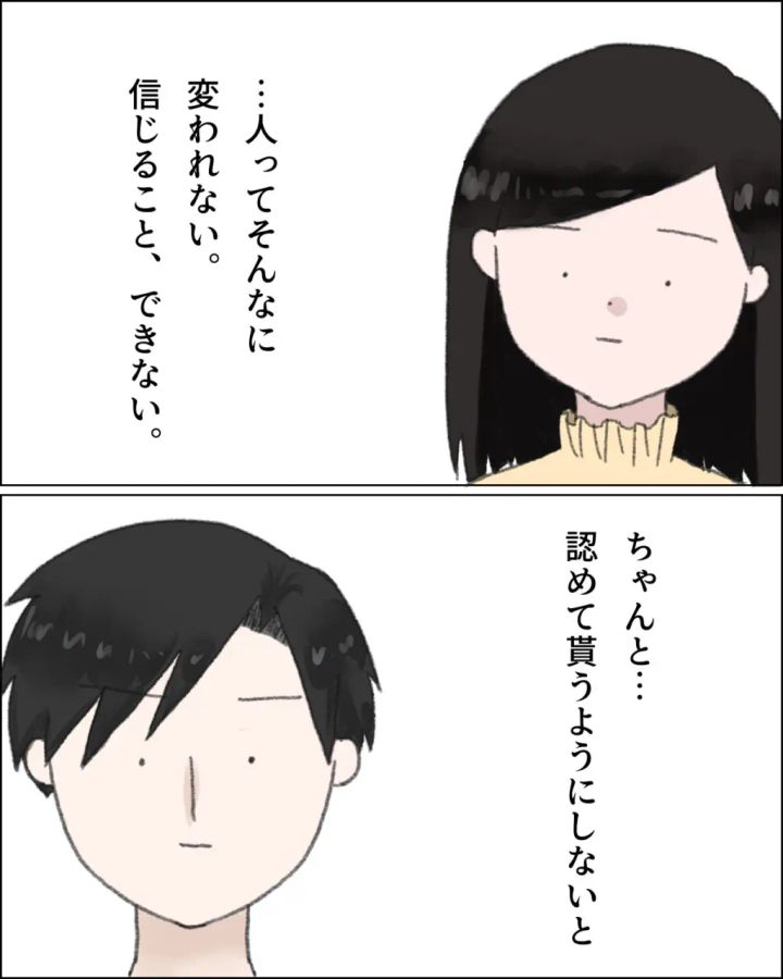 大人になってから変えるって相当な覚悟がないと難しいことですよね。カズヒデさんはアズサさんとリコちゃんとまた一緒に暮らしていきたいようですが・・・変わってくれるといいですね。