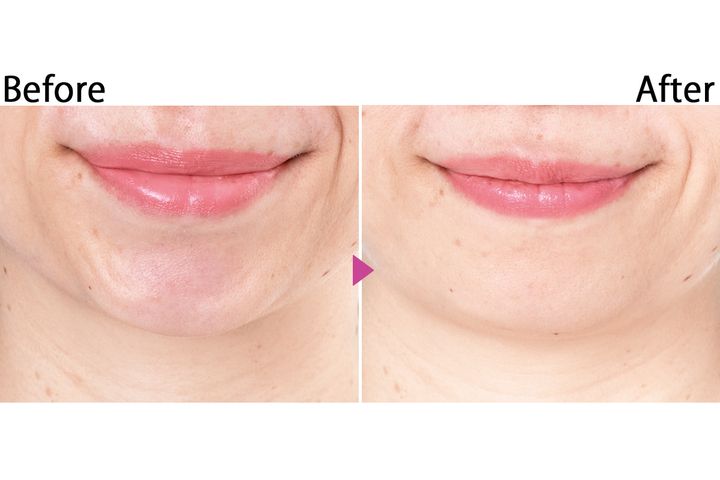 うっすらシワが寄った額、老けを更新している目尻のシワ、梅干しジワがよる顎先が一気に改善。「シワを気にしないで思いっ切り笑えるのがなんといっても気分爽快!顎先もスッキリして輪郭が女性らしくなりました」(睦月さん)