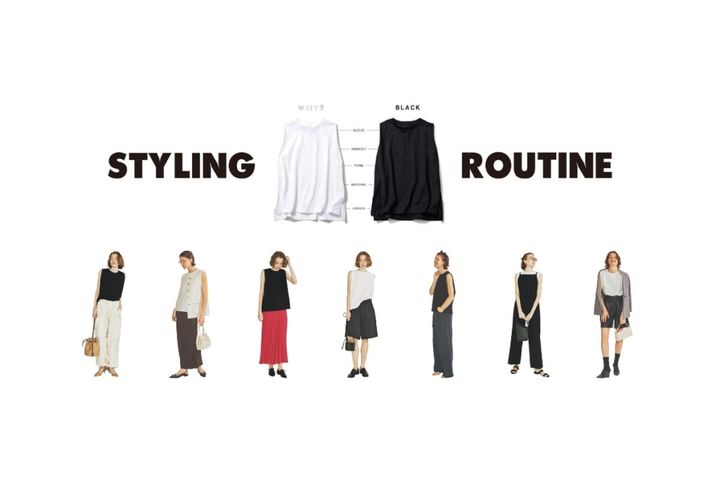 【着回しパターンも含めた全40スタイル】≫「いいとこどりのデザイン」メリットが多い「ごまかしの効く」ノースリーブ「着回し実例集」