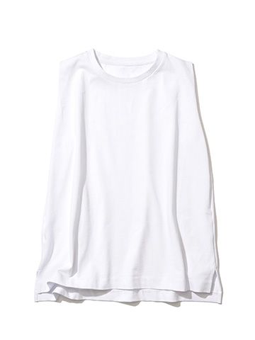 ノースリーブTシャツ/GISELeオリジナル 着ていて気持ちがいいのに透けにくい生地、ボトムのシルエットやテイストに左右されることなく、アレンジも効く使い勝手のよさ、ぴったりせずともすっきり見える体型カバーにも優れたシルエット。
