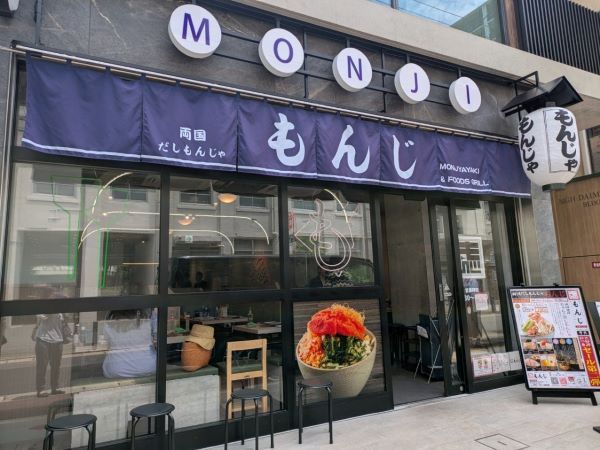 両国発祥の塩ちゃんこだしの本格もんじゃを始め、東京の下町名物を堪能できるというこちらのお店。「両国だしもんじゃ もんじ」のこだわりは、両国国技館や大相撲とのご縁も生かして開発した、もんじゃ焼きの美味しさを引き出す【三種の魚介だし】【塩ちゃんこだし】【洋風創作だし】の3種類のだし。約30種類のメニューからベースのだしに合わせてもんじゃ焼きを選びます。