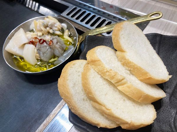 「海鮮アヒージョ」(869円)がもんじゃのお店にあるとは、かなり珍しいのではないでしょうか?