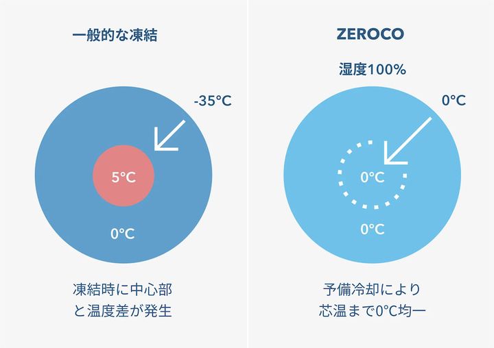 ZEROCOは食品の表面から中心まで、均一に0度に保たれるそうで、ムラがありません。