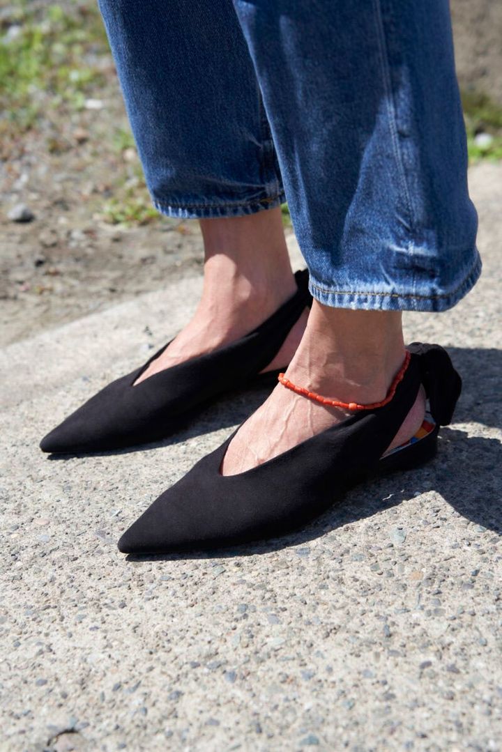 シューズ:黒スエード バックリボンパンプス/エルメス
