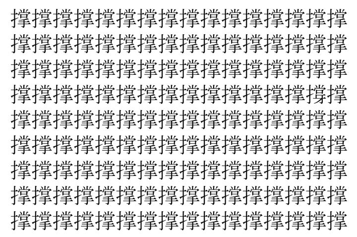 画像に並んだたくさんの「撑」という漢字。 その数144個なのですが・・・、実はその中に1つ違う漢字が紛れ込んでいます!!
