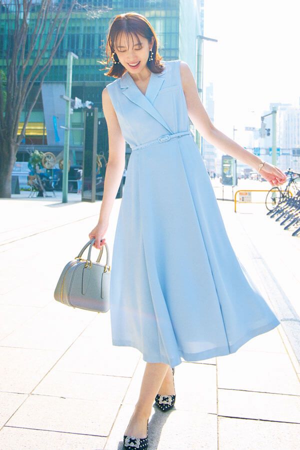 ワンピース¥26,400/CELFORD イヤリング¥9,900/ステラハリウッド 時計¥99,000/ヴァンドーム青山(ヴァンドーム青山本店) バッグ¥49,500/トフ&ロードストーン パンプス¥3,490/神戸レタス