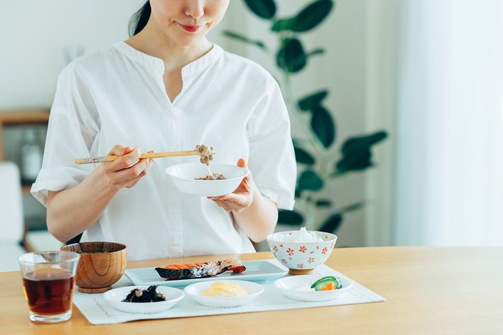 よく噛んで食べ、唾液の分泌を促すことも歯茎痩せ対策に効果的。