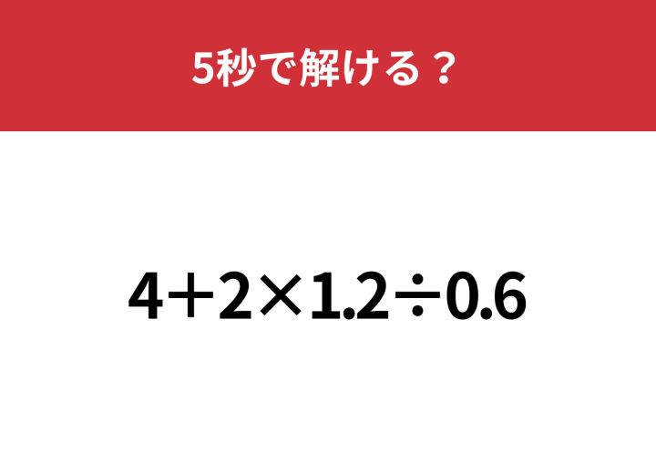 小数が入った計算は意外と難しい!?「4+2×1.2÷0.6」5秒で解ける?