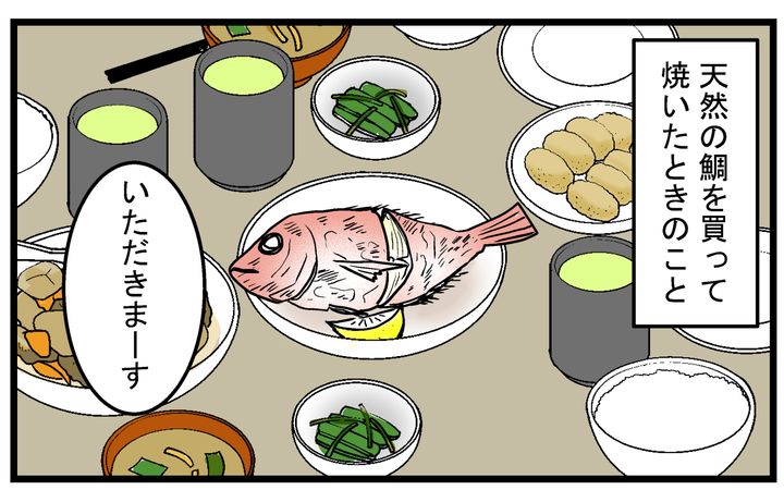 夫がスーパーで安い天然の真鯛を買って来たので、焼いて食べたところ鯛の骨に2か所コブのような