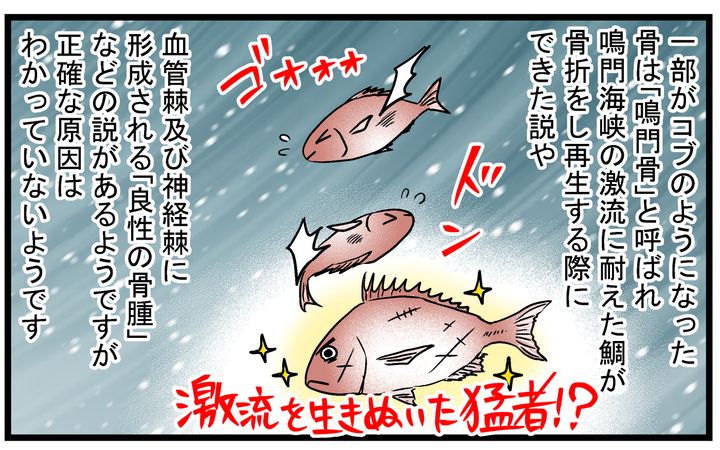 調べてみたところ骨にコブのようなものがある鯛は、俗称で「鳴門骨」と呼ばれるそうです。