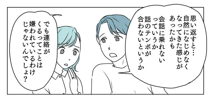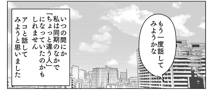 「アイコン以外の理由で同期に冷たくされる理由は思い当たらないのか」という夫の言葉を聞いて、これまでの同期との会話を振り返りました。