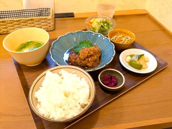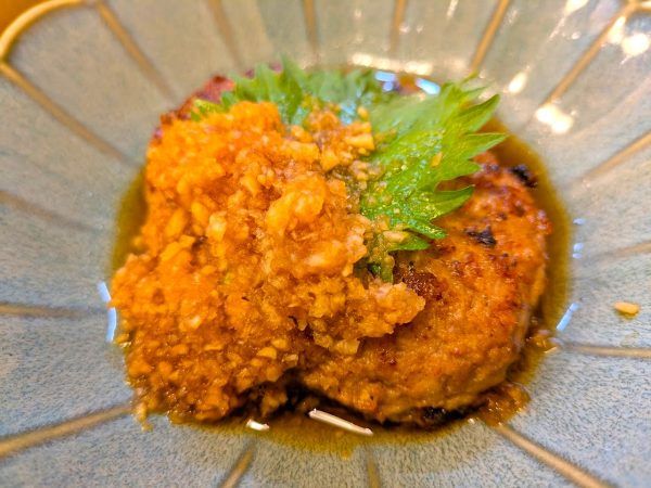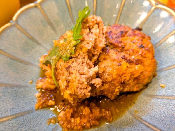 ハンバーグも挽肉がたっぷりと詰まっています。ザクザク大根おろしと同じようにハンバーグにザクザクしたような見た目の挽肉がたっぷりです。和風でさっぱりとした夏らしいハンバーグです。ヘルシーですね。