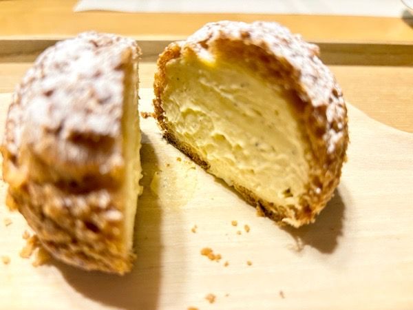 中にはカスタードクリームがぎっしり!バニラの優しい香りと甘さ、サクッとしたシュー皮のほんのりした塩味が相まって美味しい。あっという間に食べてしまいました。