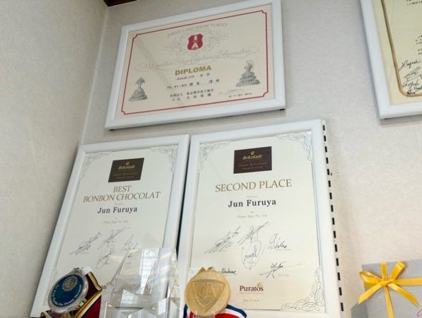 店内には、シェフパティシェの輝かしい経歴を称える賞状が飾られていました。