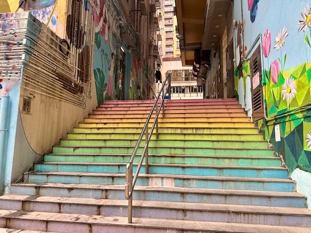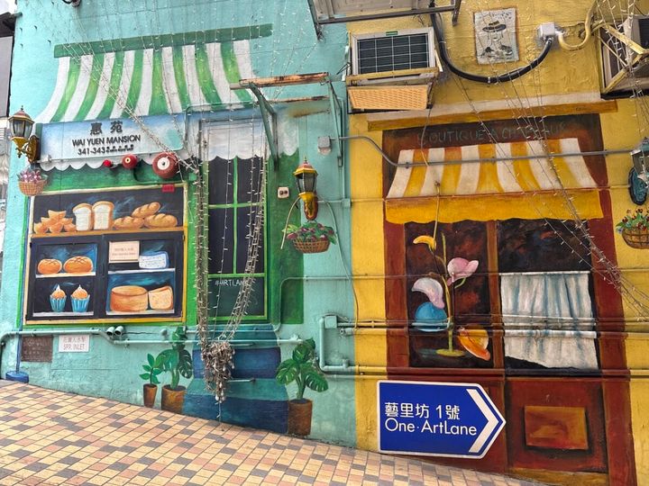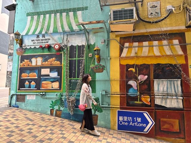 MTR港島線の西營盤(Sai Ying Pun)駅から地上に出ると、静かな住宅街の一角に、突然ポップでカラフルな空間が現れます。ここが注目を集めるニューアートエリア「芸里坊(Artlane)」。再開発により生まれ変わったこの一帯は、建物の外壁や階段、路地の壁面がすべて“アートギャラリー”となり、訪れる人を驚かせます。