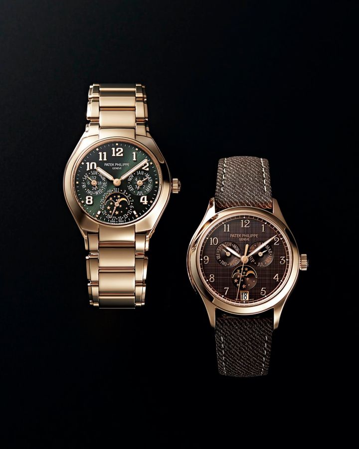 左から:〈Twenty〜4 永久カレンダー7340/1〉[ケースサイズ径36㎜、RG、サファイヤクリスタル・バック、3気圧防水、自動巻き] ¥19,030,000、〈年次カレンダー 4946〉[ケースサイズ径38㎜、RG、サファイヤクリスタル・バック、3気圧防水、自動巻き]¥8,770,000(共にパテック フィリップ/パテック フィリップ ジャパン・インフォメーションセンター)