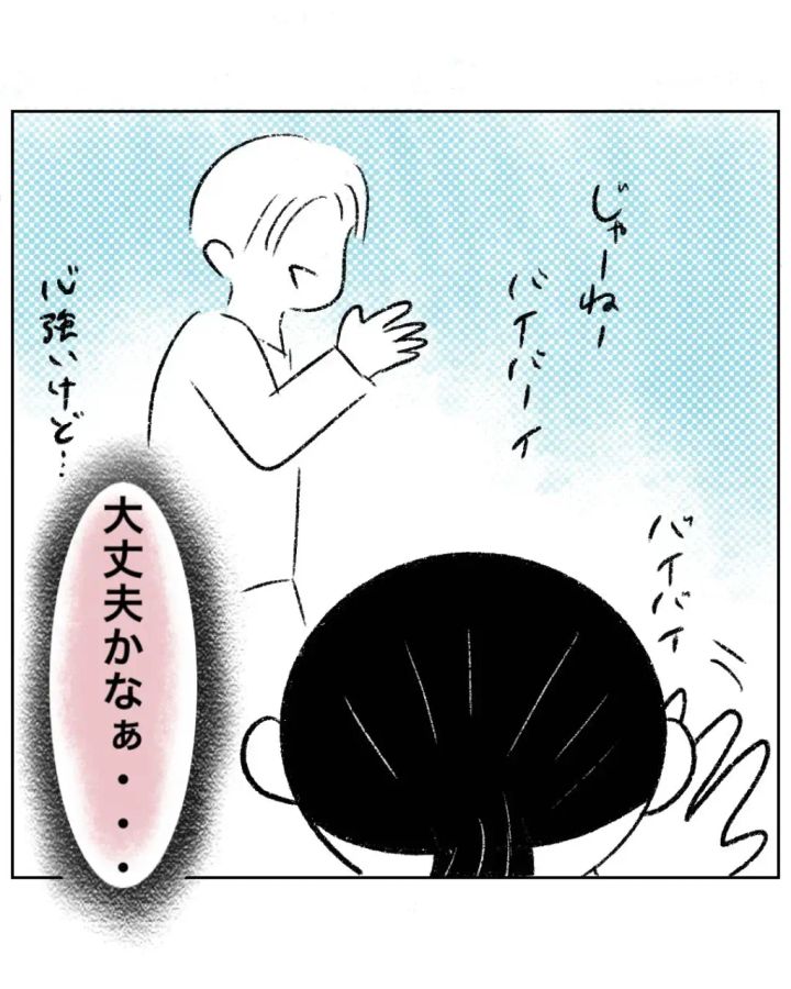 「じゃーねーバイバーイ」と手を振って帰って行きました。「心強いけど・・大丈夫かなぁ・・」マキちゃんママの言葉を聞いても、まだ不安が募るまるさん。