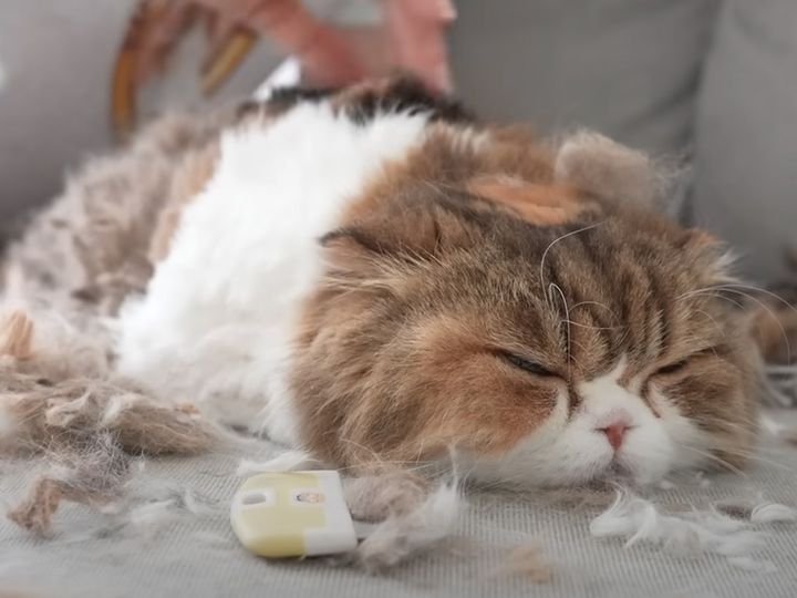 3. 薄くなった? サマーカットをしたあと、見た目の変化に戸惑う猫のリアクション
