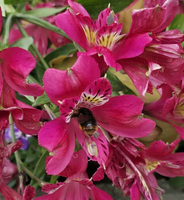 動いているものを撮影するのは大変。ちょうど花の間を飛んでいるミツバチを発見。ピントがしっかり合っていて驚きました。
