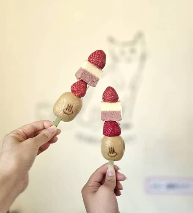 ▲「温泉まんじゅういちご串」