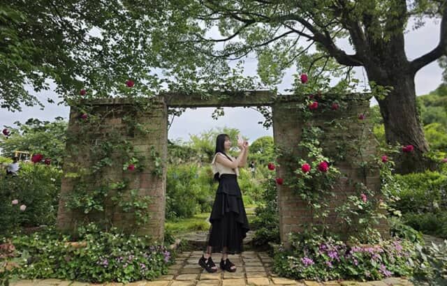▲バラが咲く「イングリッシュローズガーデン」