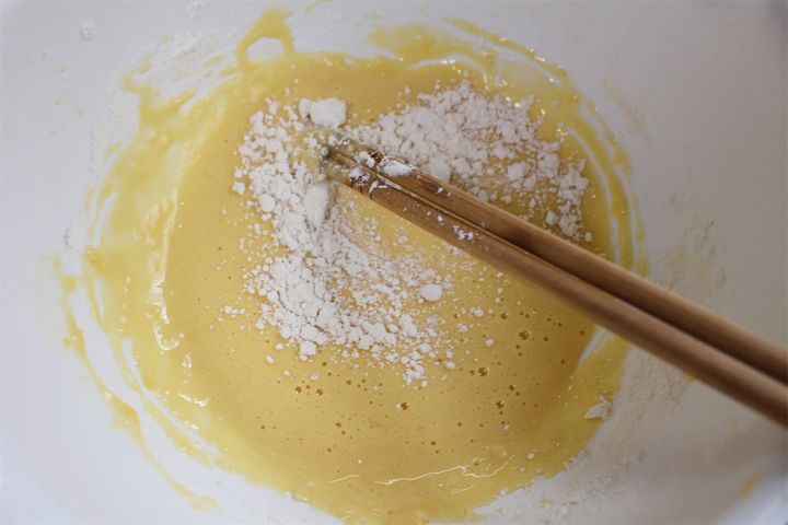7.卵を溶き、天ぷら粉、水を入れて混ぜます。