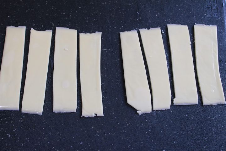 3.チーズは、1枚を4等分にし、同じ大きさのものを8個作ります。