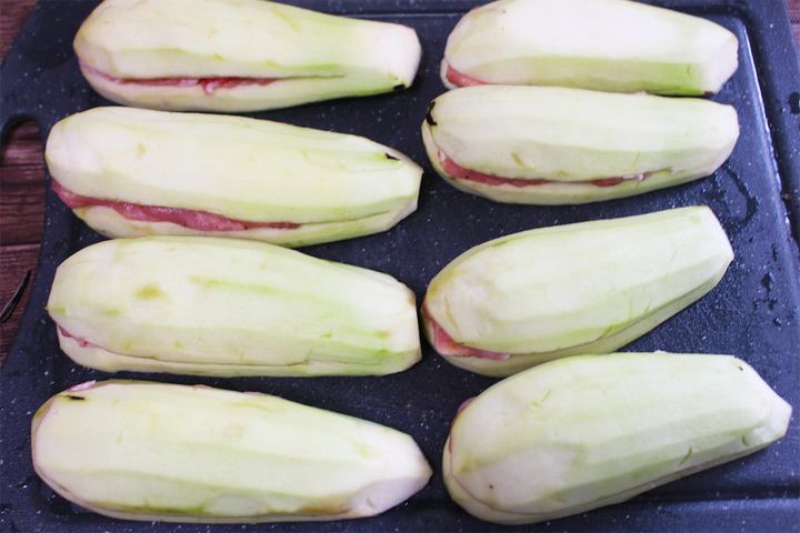 6.切り込みを入れたなすに5を挟みます。