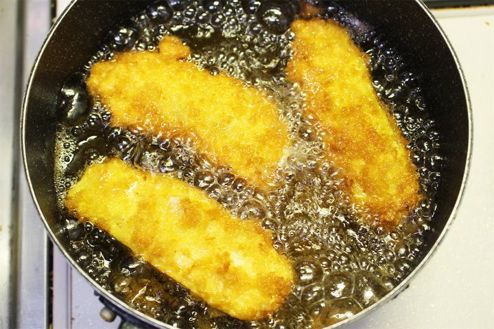 揚げ油の温度は、170~180℃がベスト。菜箸を入れて細かい泡が出る状態が目安です。