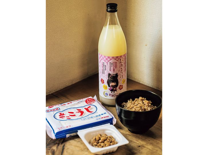特に腸内環境を整えるための麹や発酵食品は欠かせません。「みやここうじ」は低温乾燥麹。手作り味噌や甘酒、塩麹が手軽にできる優れもの。「たまひめちゃんの麹あまざけ」は美味しいので常備。「YUWAE RU」さんの寝かせ玄米はもちもちしていて香ばしく噛みごたえもあり、満足感があります。納豆も毎日食べています。