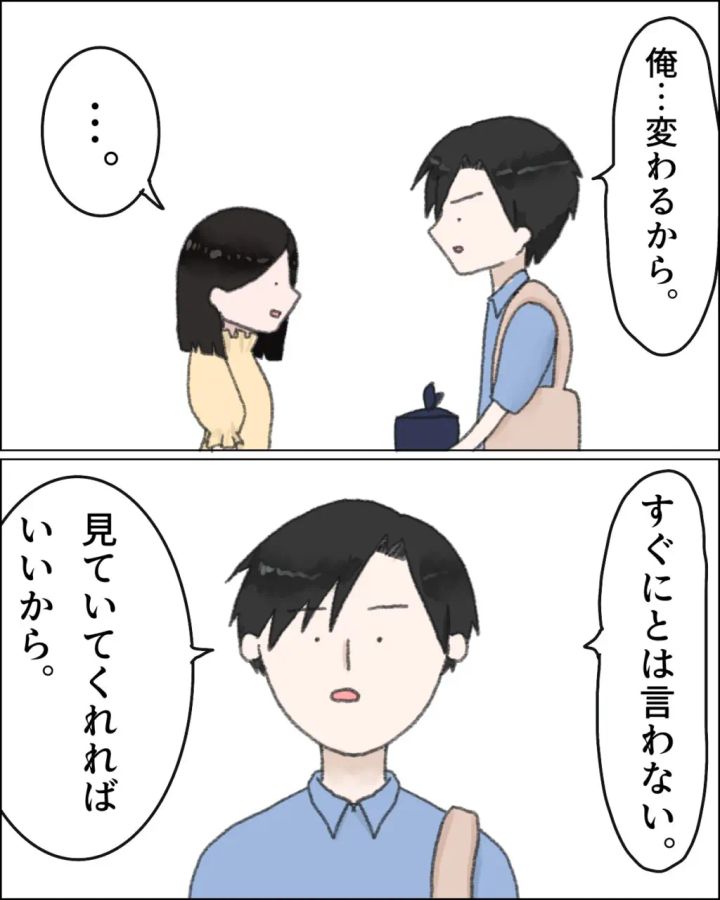 「俺、変わるから」と真剣な眼差しで言うカズヒデ。たった1回お弁当を作ってきただけ。でも、私が知っているカズヒデなら絶対にしないことをしてきました。私が驚きから固まっていると、カズヒデは「すぐにとは言わない。見ていてくれればいいから」と言いました。