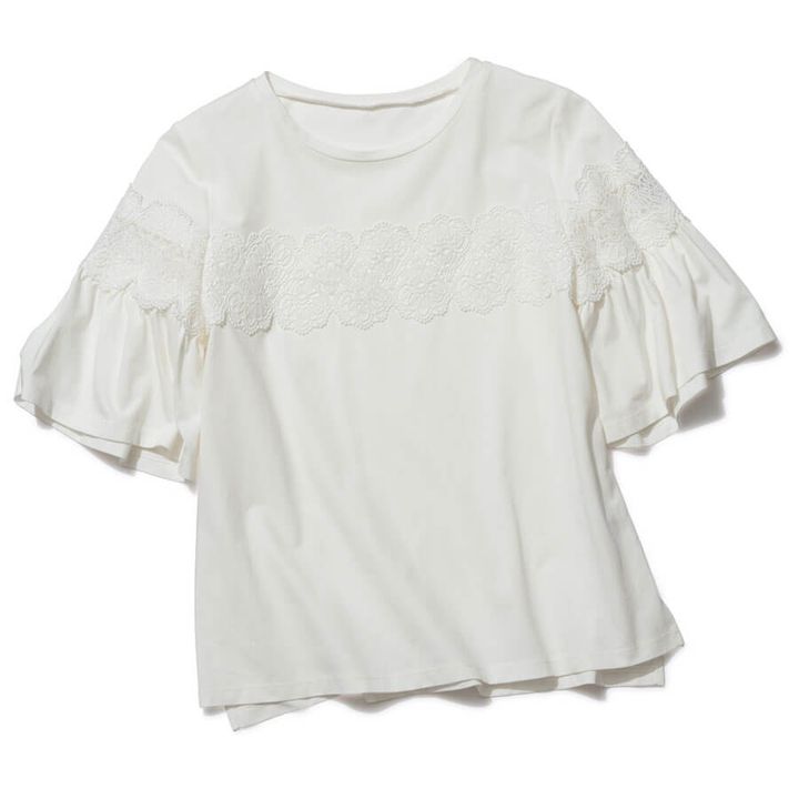 落ち感あるレース袖で華奢見えを狙って