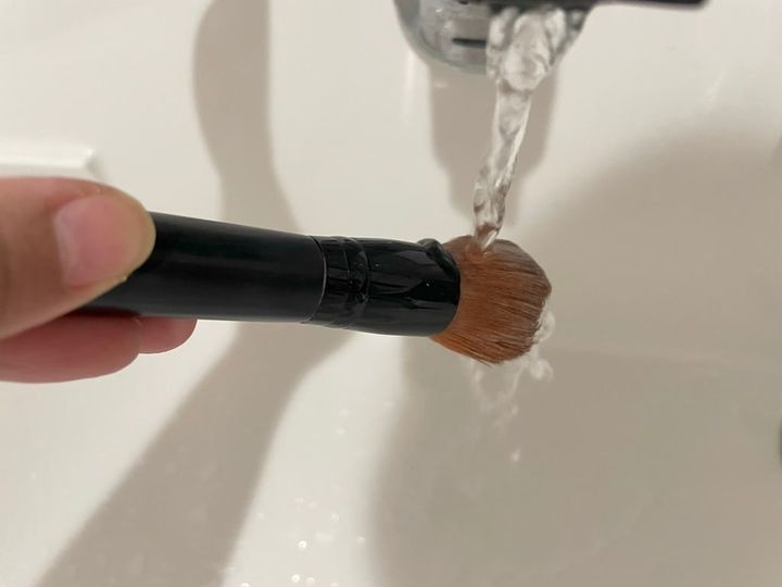 まずは、ブラシを水で濡らします。