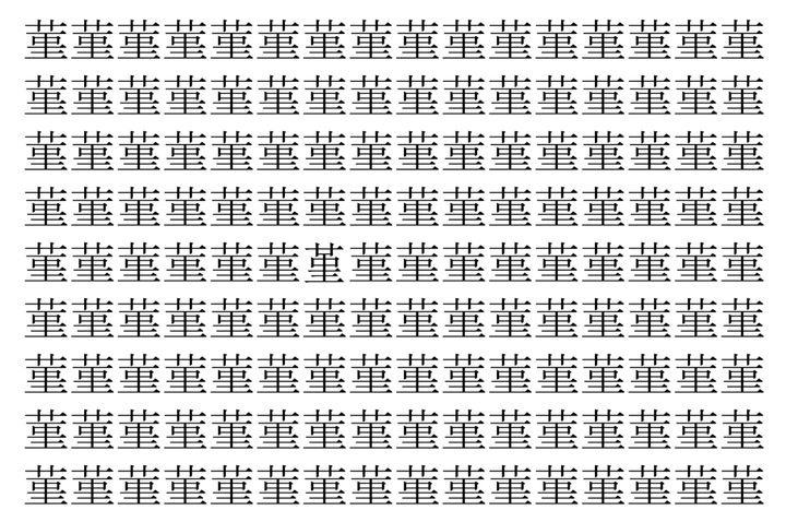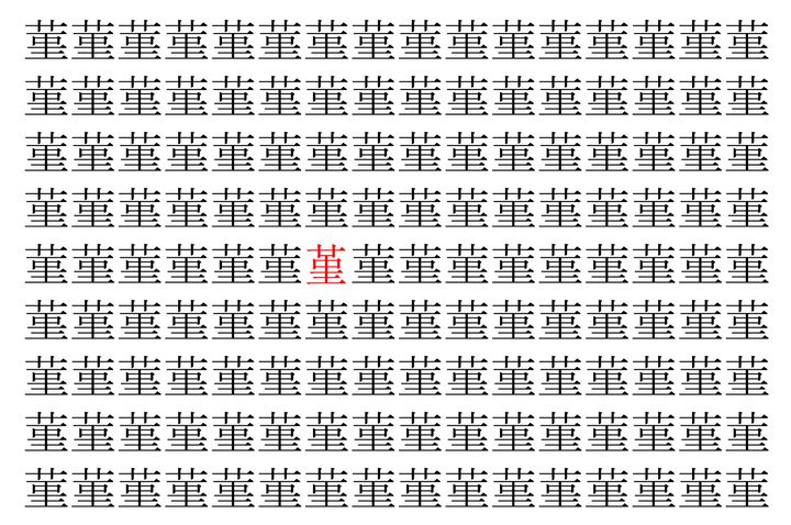画像の中には、「菫」という漢字が縦に9行、横に16個並んでいます。 全部で144個となりますが・・・、そのうち1つは「異なる漢字」となってますよ!!