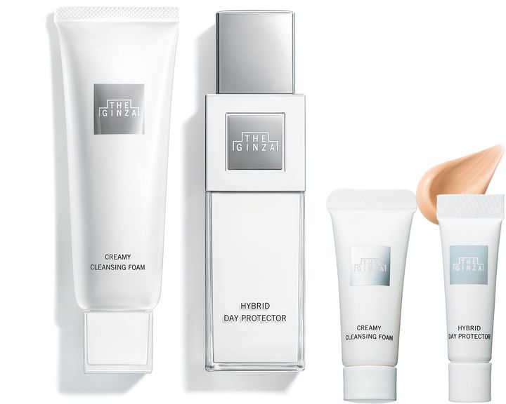 付録になるたびに争奪戦になるTHE GINZA。すっきり洗えて潤う洗顔&美容液効果もUVケアもメークも叶える神ベースをたっぷりお試しできます。ハイブリッドデープロテクター<日中用美容液・化粧下地>SPF33・PA+++ 3g、クリーミークレンジングフォーム<洗顔料>7g