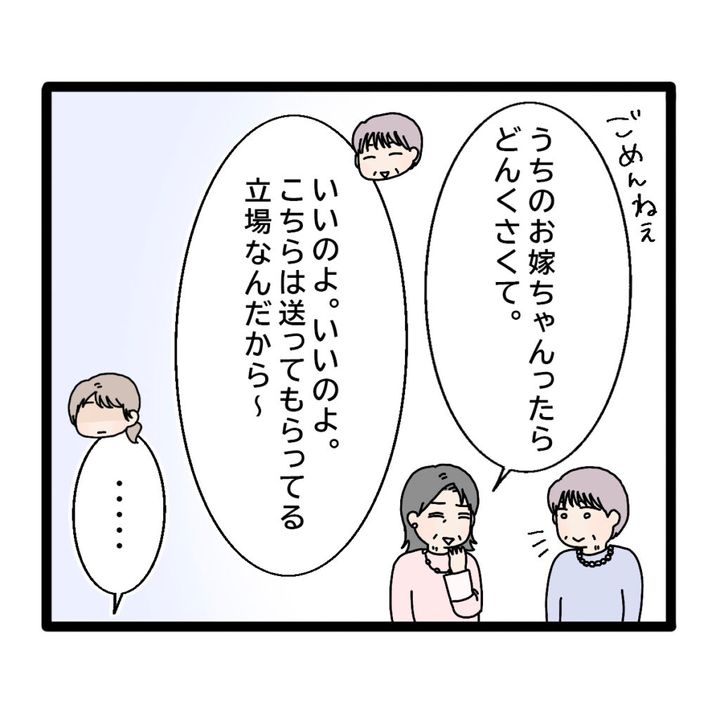 そして到着。義母の友達は私ではなく義母にお礼を言いました。義母も友達からお礼を言われて「全然いいのよぉ~」と嬉しそう。