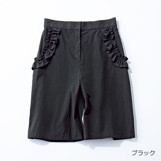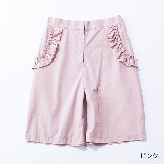 甘フリルポケットで大人の可愛げを効かせたハーフパンツ