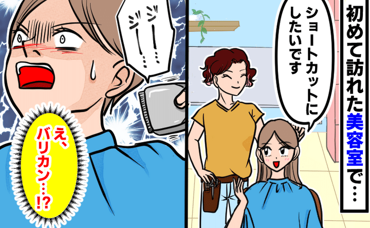 担当の美容師さんは比較的若めだったので、特に不安は感じていませんでした。ところが、仕上げのころに少しうとうとしていた私の耳に、ジージーという不思議な音が聞こえてきました。はっと目を開けて鏡をのぞくと、美容師さんはなんとバリカンを手にしていて……。