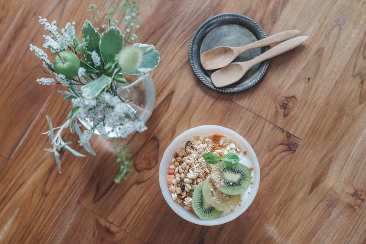ビタミンCをプラスする場合は、特におすすめしたいのが「キウイフルーツ」!爽やかな酸味は、食欲がない季節でもパクパク食べられるのでおすすめです。しかも、ゴールデンキウイは、1個で1日分のビタミンCを摂取でき、この一皿でバランスの良い朝ごはんに◎。