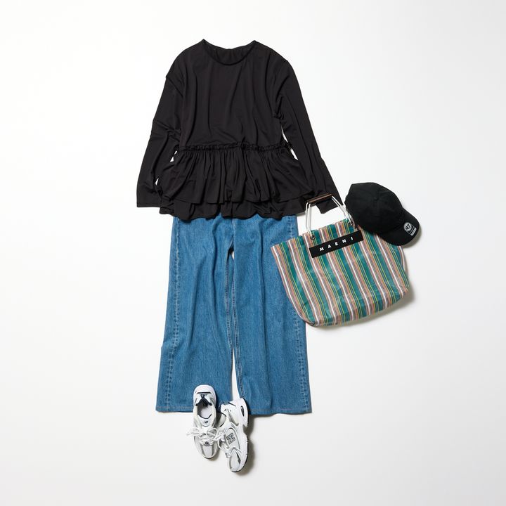 メッシュ素材だから ×デニムの公園コーデも 涼しくいられる