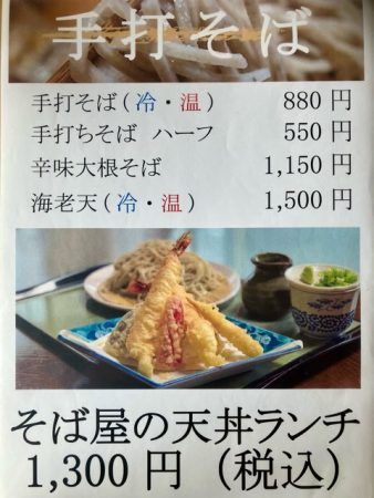 こちらは平日のランチメニュー。どの手打ちそばもおいしそうです。