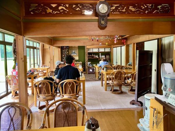 古民家の中はゆったりとしたスペースでテーブルが並んでいます。